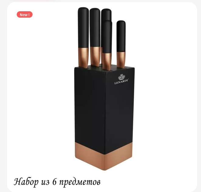 LENARDI Набор ножей 6пр. на подставке в под.уп.(х8)Нержавеющая сталь