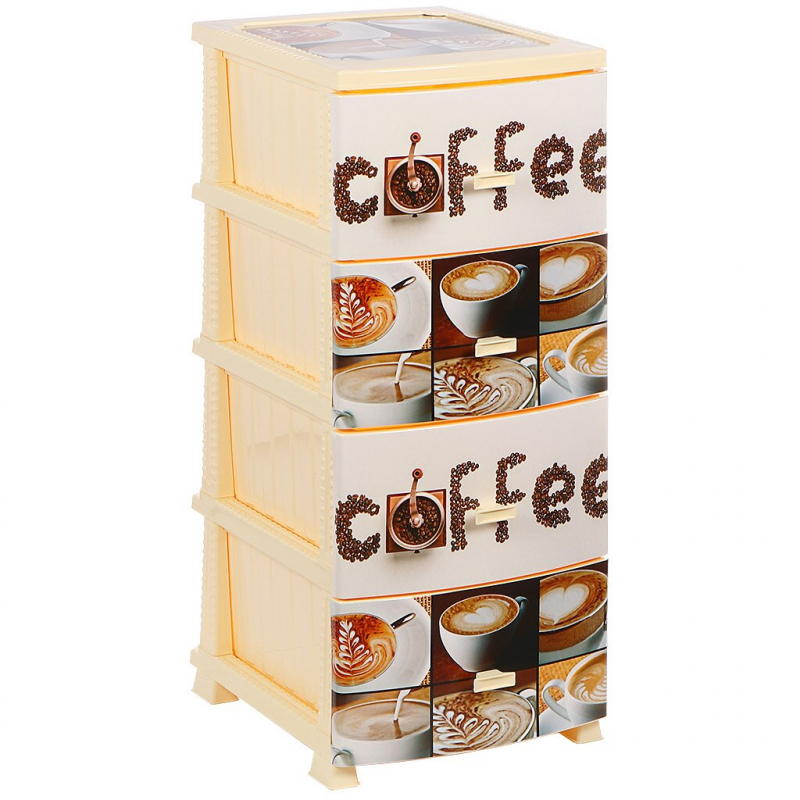 СП Комод 4 ящика, Кофе, 38х48х98 см, монорисунок, Росспласт, РП-451