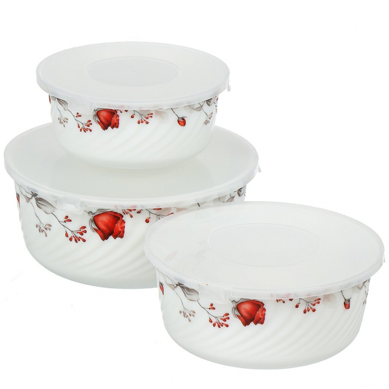 СП Вероника Салатник стеклокерамика, круглый, 3 шт, 14. 16. 19 см, 0.5, 0.8, 1.4 л, с крышкой, Dani