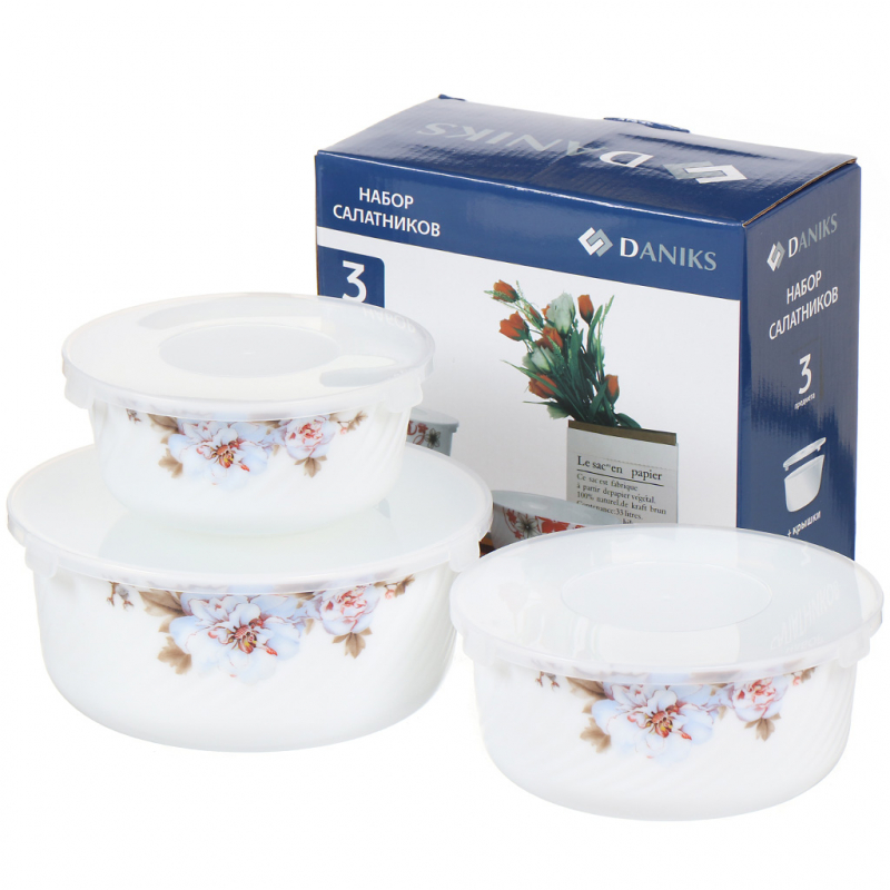 СП Стк ОРЛЕАН Набор салатников 3пр (19см; 16см;14см) пласт.крышки BY14HDW-3-T36 DANIKS