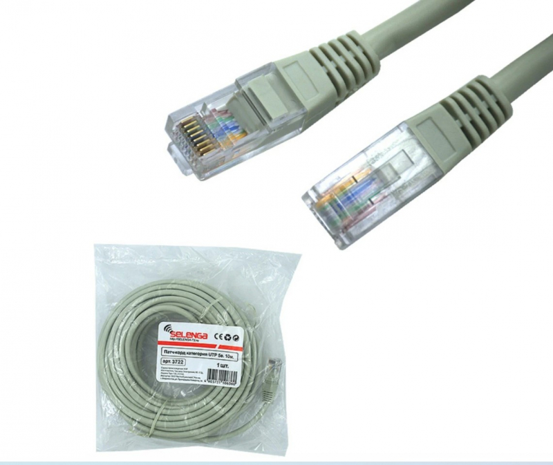 Артикул № 884308 Патч-корд Selenga категории 5e, длиной 10 метров, неэкранированный (UTP). Кабель обжат с обоих концов коннекторами RJ45. Выполняет соединительную функцию, обеспечивая быстрое и удобное подключение сетевого оборудования.