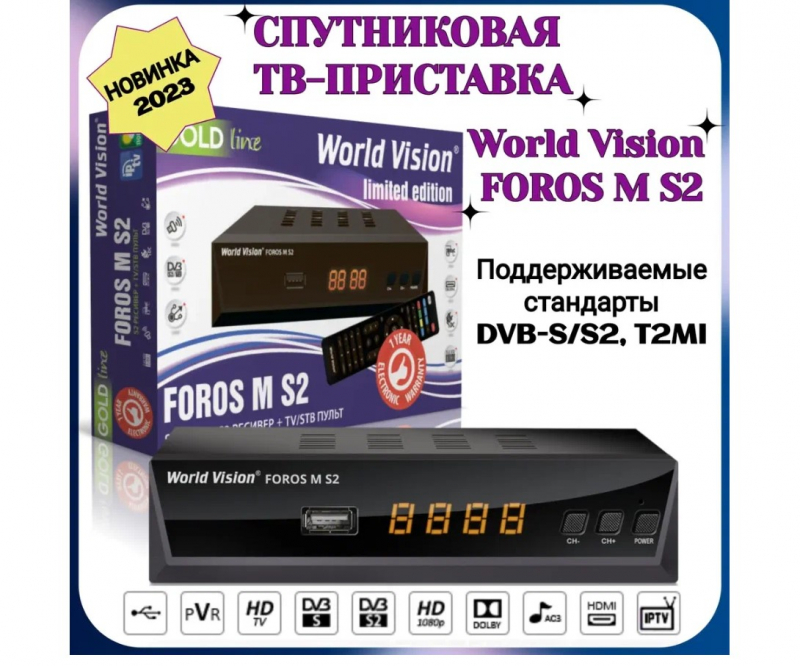 Ресивер World Vision FOROS S2 M (Спутниковый, Металл, Программируемый ДУ)