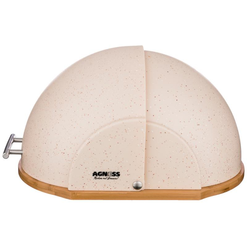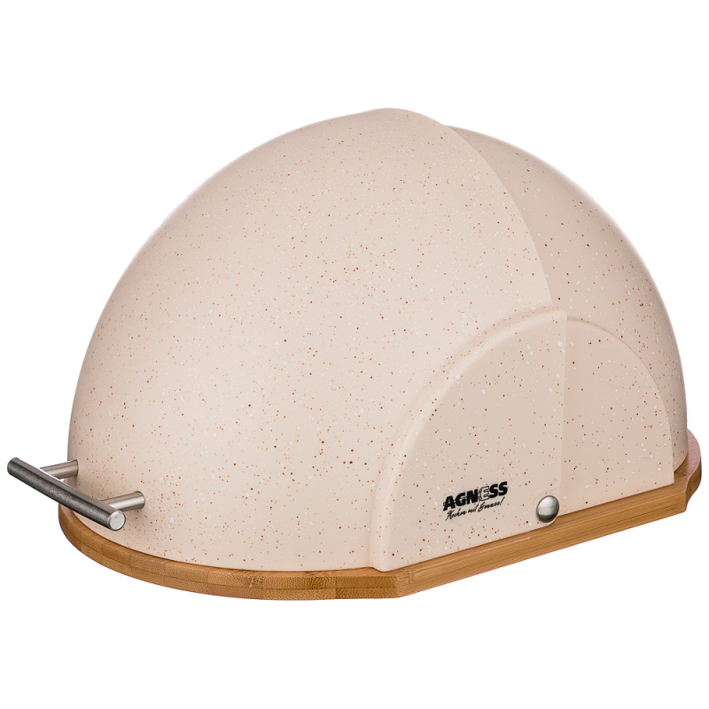 ARTI-M ХЛЕБНИЦА AGNESS ДЕРЕВЯННАЯ С ПЛАСТИКОВОЙ КРЫШКОЙ, ЦВЕТ "БЕЖЕВЫЙ МРАМОР" 36*26*20 СМ