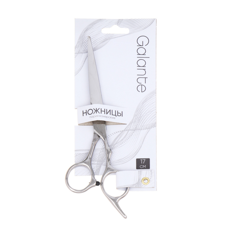 Ножницы парикмахерские GALANTE Материал - Металл Размер/Диаметр - 17 см Страна производитель - Китай Цвет - Серебряный