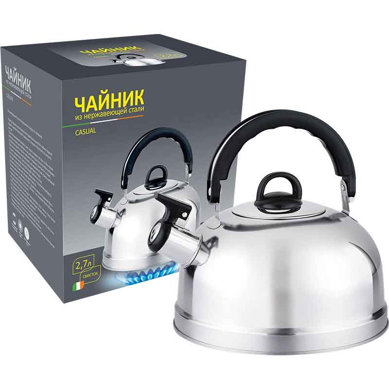 СКР Чайник Casual, объем 2,7 л, из нерж стали со свистком, зеркальная полировка, без тм