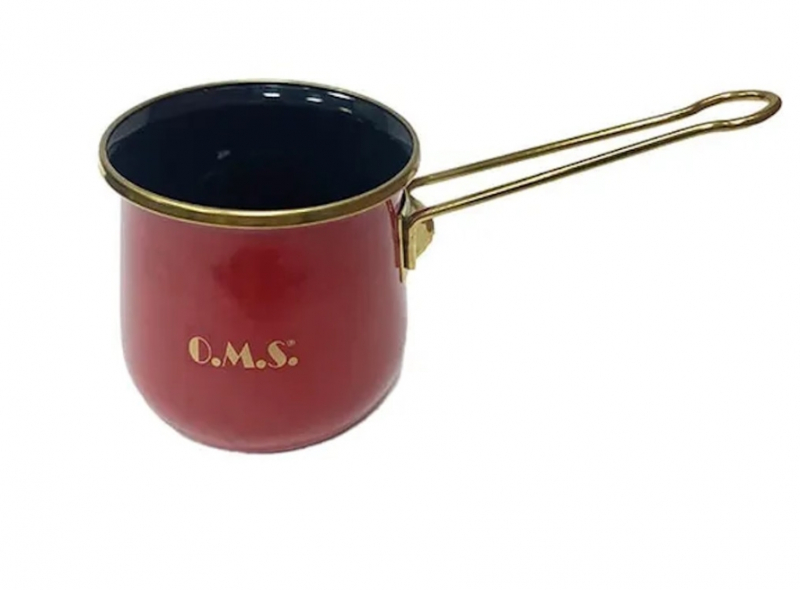 OMS Турка эмалированная 0,37 л, цвет: красный, цвет ручки: золото, арт. 1013-M-Rd