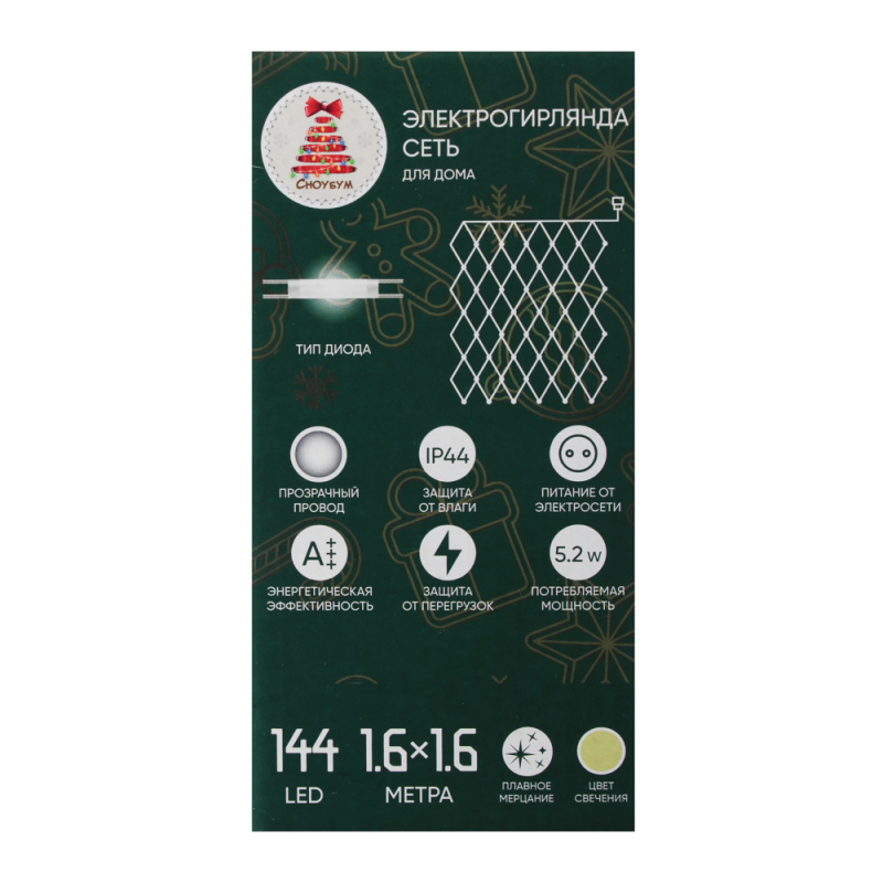 VETTA СНОУ БУМ Гирлянда эл. сеть 144LED, 1,6x1,6м, шампань, плавное мерцание, ПВХ прозр., 220В