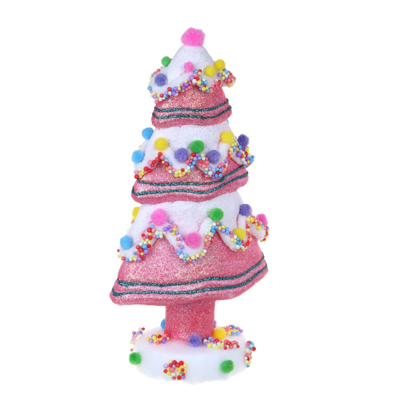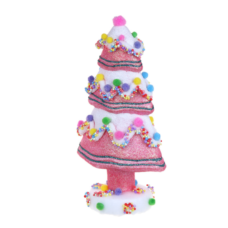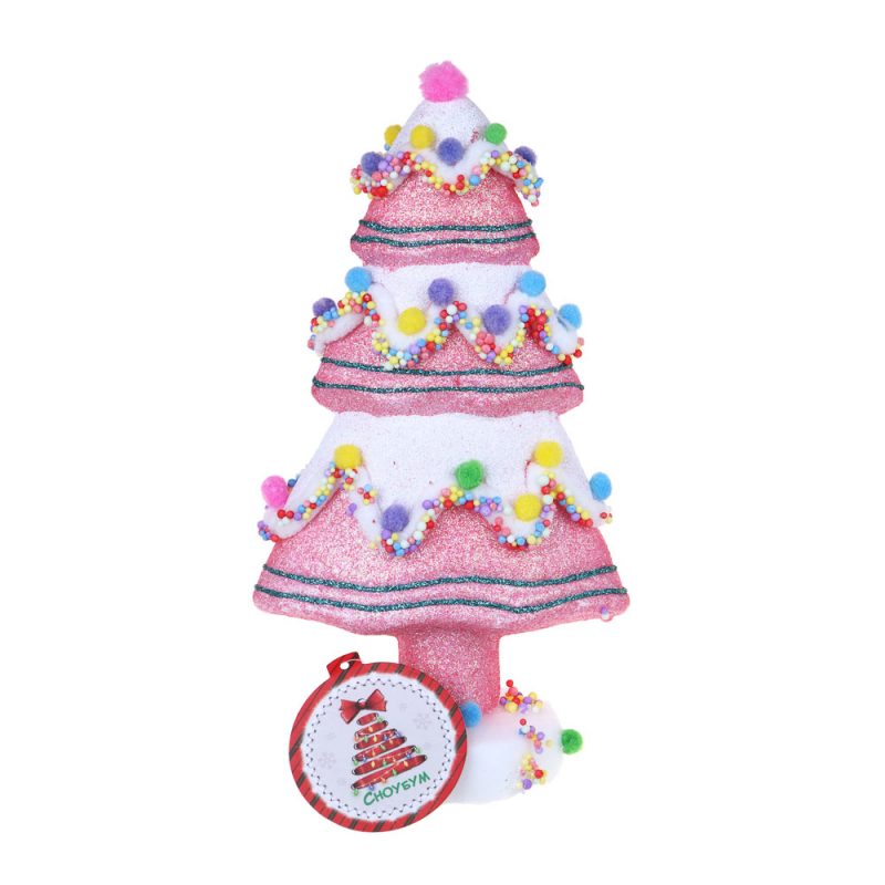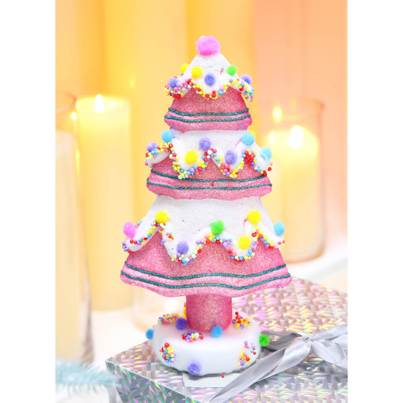 VETTA СНОУ БУМ Декор в виде елки, с глиттером и помпонами, 13x8x24 см, цвет розовый