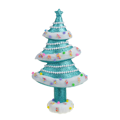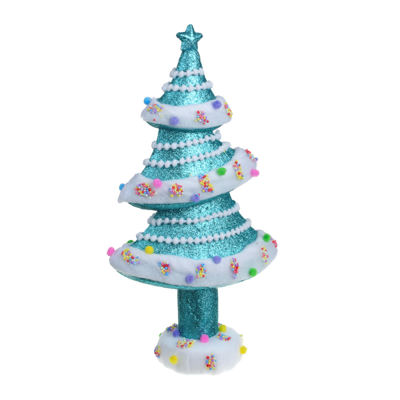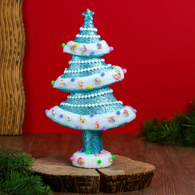 VETTA СНОУ БУМ Декор в виде елки, с глиттером и помпонами, 24x11x41 см, цвет голубой, арт.2