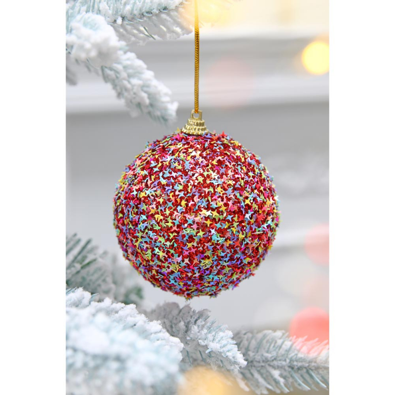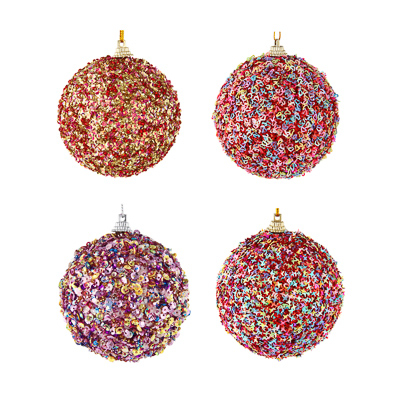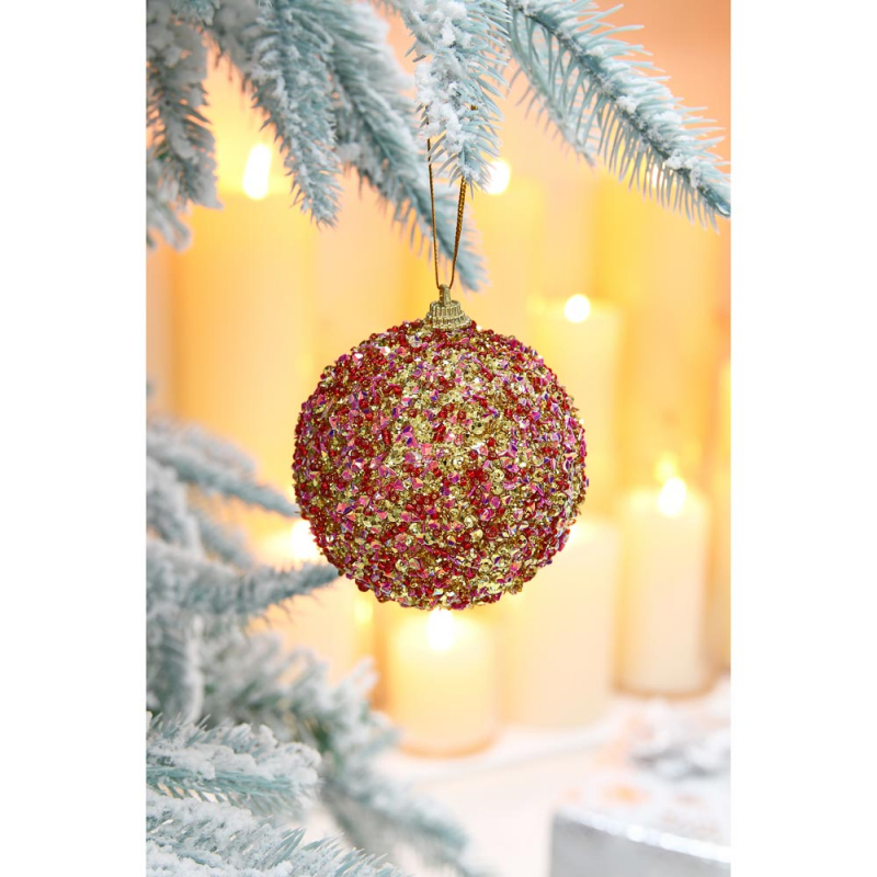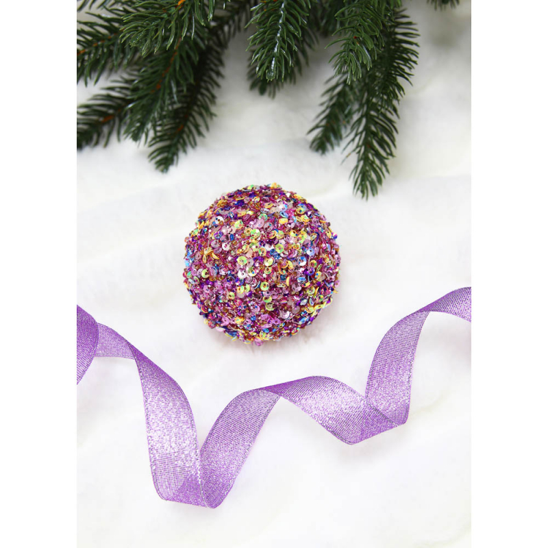 VETTA СНОУ БУМ Подвеска шар с декором, 8 см, 4 цвета, розово фиолетовые оттенки