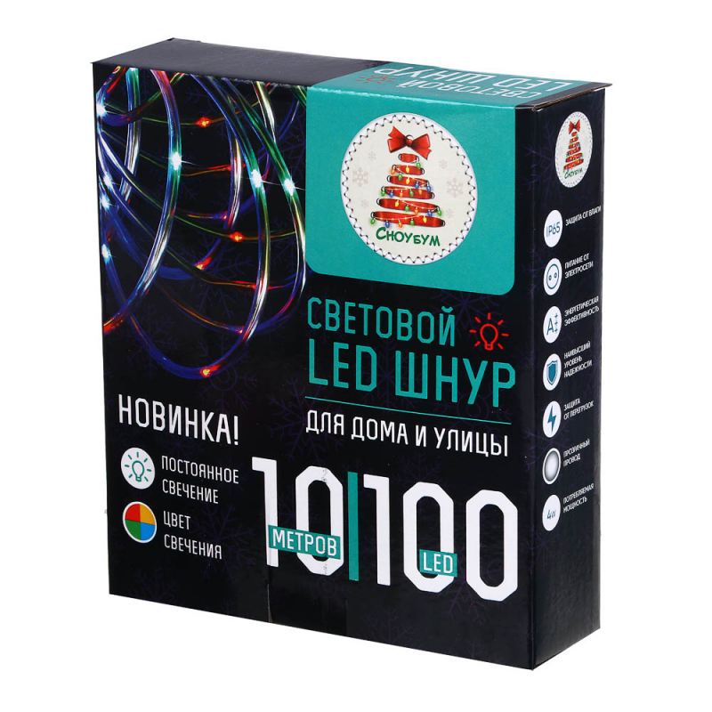Ищете универсальную гирлянду, которая подойдет как для дома, так и для улицы? Световой LED-шнур СНОУ БУМ – это десятиметровая электрогирлянда, которая станет ярким декором по случаю праздника в квартире, на даче или в офисе. Гибкий шнур с 100 диодами с постоянным свечением, который светит красным, синим и зеленым светом, можно намотать на перила лестницы, собрать в виде любой фигуры или повесить просто так в виде нити. Имеет максимальную защиту от влаги и наивысший уровень надежности, защищена о