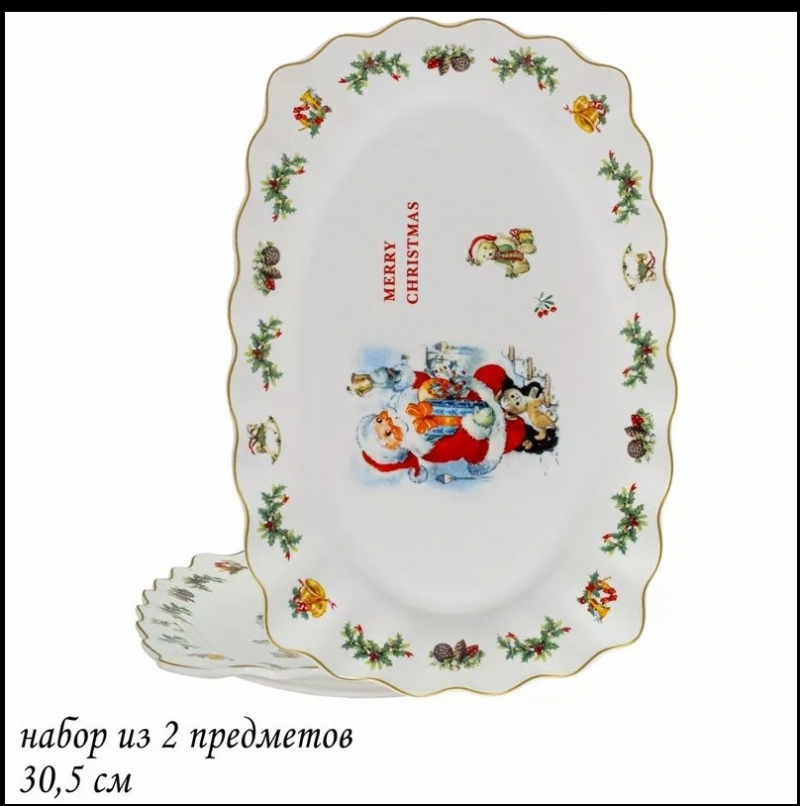 LENARDI НОВОГОДНИЙ Набор из 2 овальных блюд 30,5см в под.уп.(х12)Фарфор