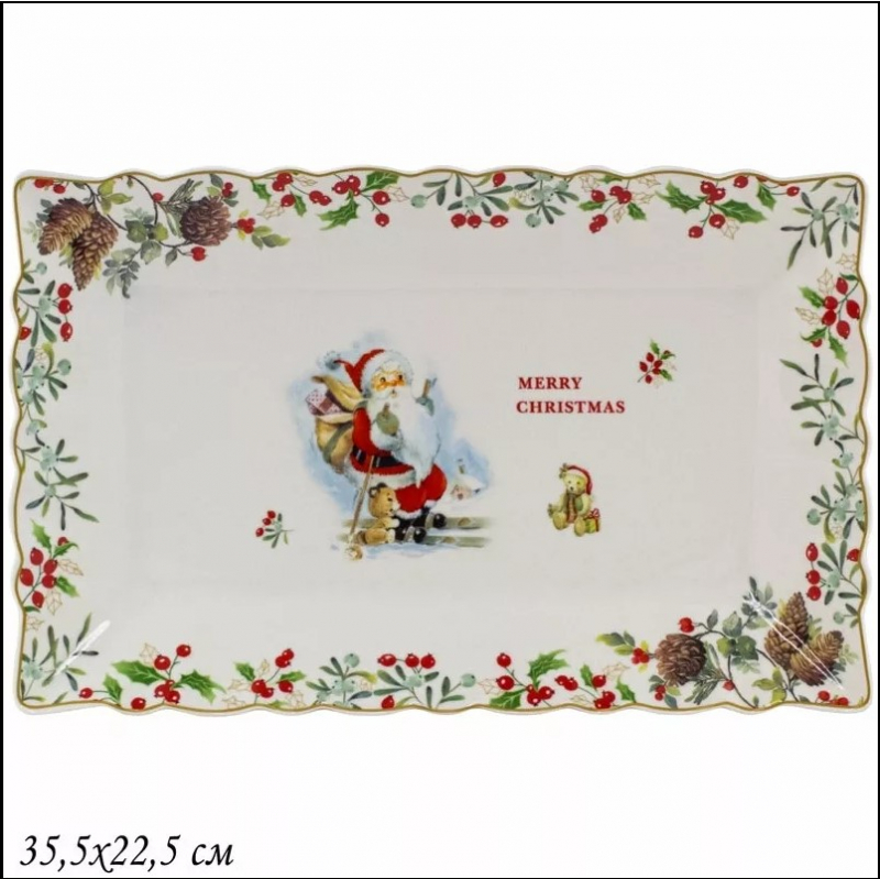 LENARDI НОВОГОДНИЙ Прямоугольное блюдо 35,5х22,5см в под.уп.(х8)Фарфор