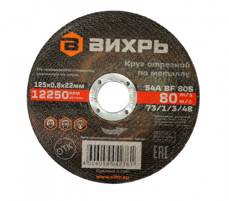 Диск отрезной по металлу ВИХРЬ 125х0,8х22 мм (выбивать по 25 шт!! цена за 1 шт!!)