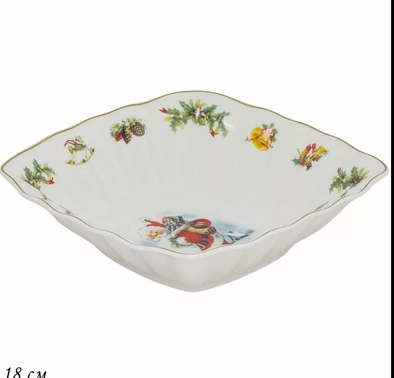 LENARDI НОВОГОДНИЙ Квадратный салатник 18см в под.уп.(х36)Фарфор