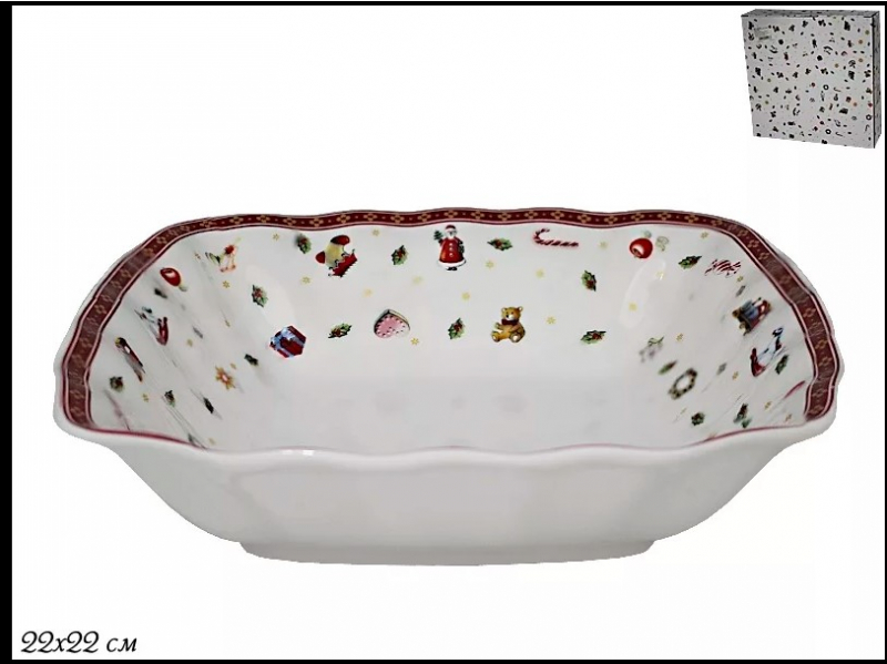 LENARDI НОВОГОДНИЙ Квадратный салатник 22см. в под.уп.(х18) Фарфор