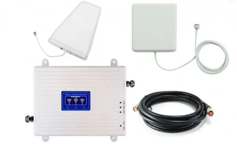 Комплект усиления сотовой и интернета, Репитер 2G/3G/4G (900/1800/2100МГц) до 300 кв.м. кабель 15 м.