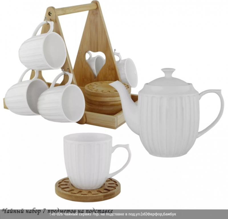 LENARDI Чайный сервиз 7пр. на подставке в под.уп.(х6)Фарфор,бамбук