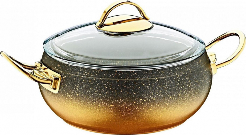 OMS Кастрюля цв. черн./зол ИНДУКЦИЯ, с крышкой стеклянной 20х9 см (2,5 л) с АПП