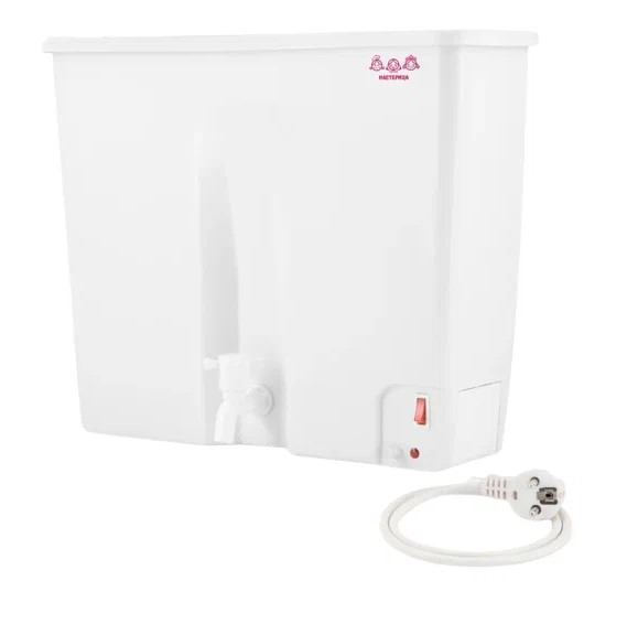 Объем 22л, Термопластик, Мощность 1250Вт, t нагрева воды 20-60±10˚С, ручная регулировка t, индикация нагрева. Рабочее напряжение 220-240 В, 50 Гц. Спиральный нагревательный элемент, полипропилен. Размер упак. 487х165х350мм.