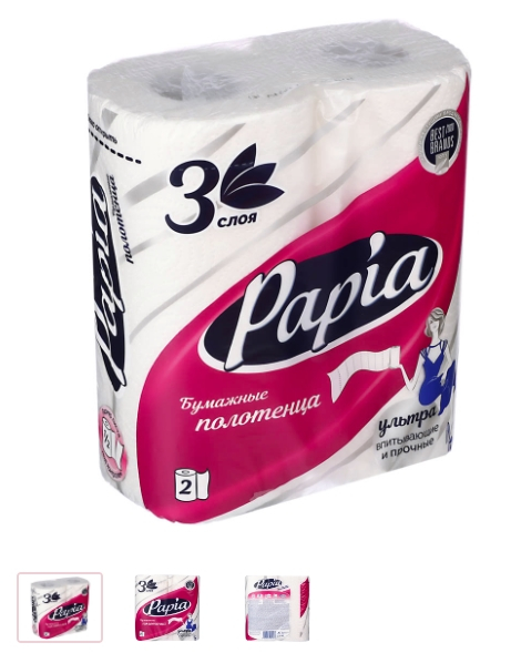 VETTA Полотенца бумажные PAPIA 3 слоя, 2 рулона