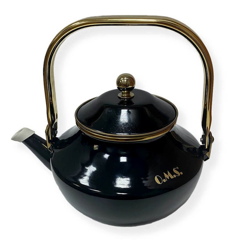 OMS Чайник эмалированный 2 л, цвет: черный, цвет ручки: золото, арт. 1011-BK