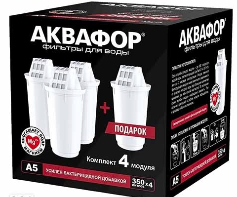 менный фильтрующий модуль «Аквафор» А5 комплект 4 штуки используется в кувшинах «Аквафор», которые имеют гнездо посадки картриджа диаметром 70 мм. Изделие специально разработано для ржавой, мутной водопроводной воды. Благодаря содержанию перламутрового доломита отфильтрованная вода сохраняет, полезный для здоровья сердца и сосудов, магний.
