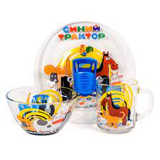 MFK Набор "СИНИЙ ТРАКТОР" 3 пр.: кружка 250 мл, салатник 13 см, тарелка 19,5 см в под.уп.