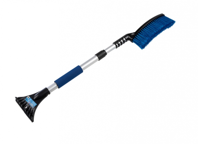 Щетка с регулируемой алюминиевой ручкой выполнена в синем и черном цветах. Размер регулируется от 700 до 1000 мм. У щетки удобный размер и эргономичный дизайн.Выдерживает температуру от -30° до +50° градусов.