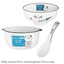 LENARDI Набор салатник 850мл, салатник/крышка 470мл и ложка в под.уп.(х18)Фарфор