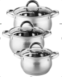 HOFFMANN Набор кастрюль, нерж. сталь,6 предм.( 6 шт.) 1,4 л. 14 см., 2,0 л. 16 см., 2,8 л.18 см.