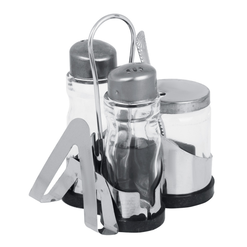 Набор для соли, перца и горчицы с салфетницей "Комфорт", h13см, нерж. сталь, стекло