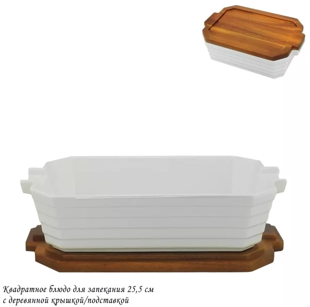 LENARDI Блюдо квадратное для запекания 32,5см с дерев.крышкой/подставкой в под.уп.(х6)