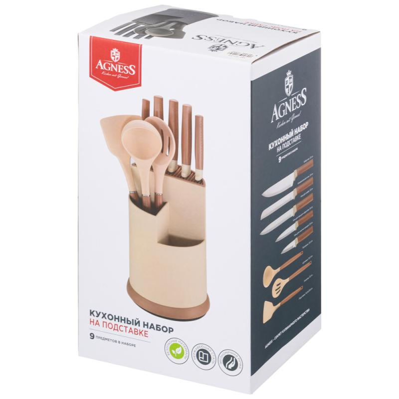 ARTI-M НАБОР ИЗ 9ПР: 5 НОЖЕЙ, ПОЛОВНИК, ЛОПАТКА И ШУМОВКА, ПОДСТАВКА AGNESS