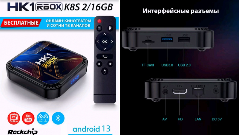 Общие характеристики Модель Смарт приставка для телевизора; Медиаплеер; HK1 RBOX K8S 2/16