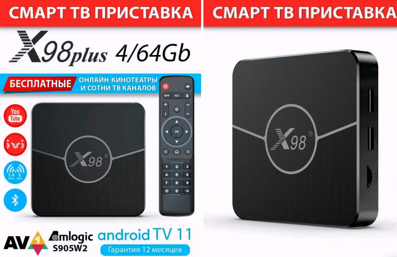 **Настроена и готова к использованию!** - В этой смарт ТВ приставке уже предустановлены YouTube, интернет-браузер, программы для бесплатного просмотра более 200 ТВ каналов, бесплатные онлайн-кинотеатры, видеоплеер и другие полезные программы! Наслаждайтесь просмотром любимого контента сразу после подключения ТВ приставки к телевизору и интернету и не тратьте время и силы на установку программ и настройку приставки. Смарт ТВ приставка X98 Plus значительно расширит функционал Вашего телевизора, внося разнообразие в семейный досуг. Android ОС TV 11 делает ТВ приставку универсальным медиаплеером, вы сможете смотреть видео онлайн или оффлайн, работать в интернете через браузер, устанавливать приложения из Playmarket, пользоваться социальными сетями, играть в различные Android игры. В комплектации Вас приятно порадует инструкция на русском языке.