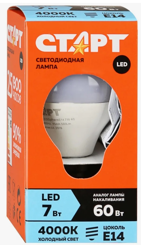 Лампа LED СТАРТ ECO Sphere E14 7W 4000K