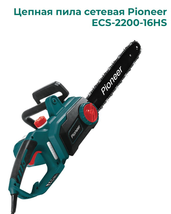 Пила цепная электрическая Pioneer ECS-2200-16HS, 2200 Вт, 7400 об/мин, шина 16 дюйм.