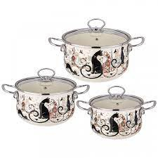 ARTI-M НАБОР КАСТРЮЛЬ AGNESS ЭМАЛИРОВАННЫХ СЕРИЯ "ПАРИЖСКИЕ КОТЫ", 6ПР. 2,0/2,8/3,6Л,18Х11/20Х12/22Х