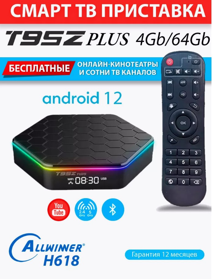 Модель Андроид приставка; Смарт ТВ приставка для телевизора; T95Z PLUS 4GB/64GB Allwinner H618