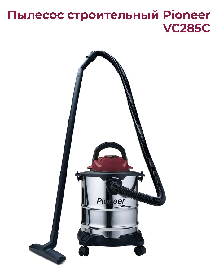 Электрический строительный пылесос Pioneer VC285C (1400 Вт бак 20л нерж.ст. фильтры)