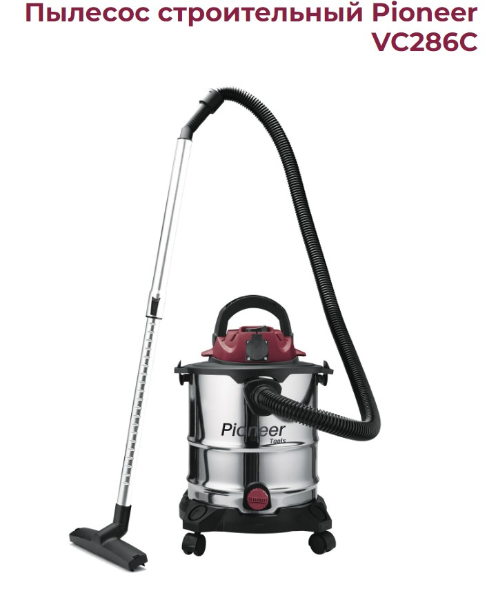 Электрический строительный пылесос Pioneer VC286C (1400Вт, бак 20л, фильтра)