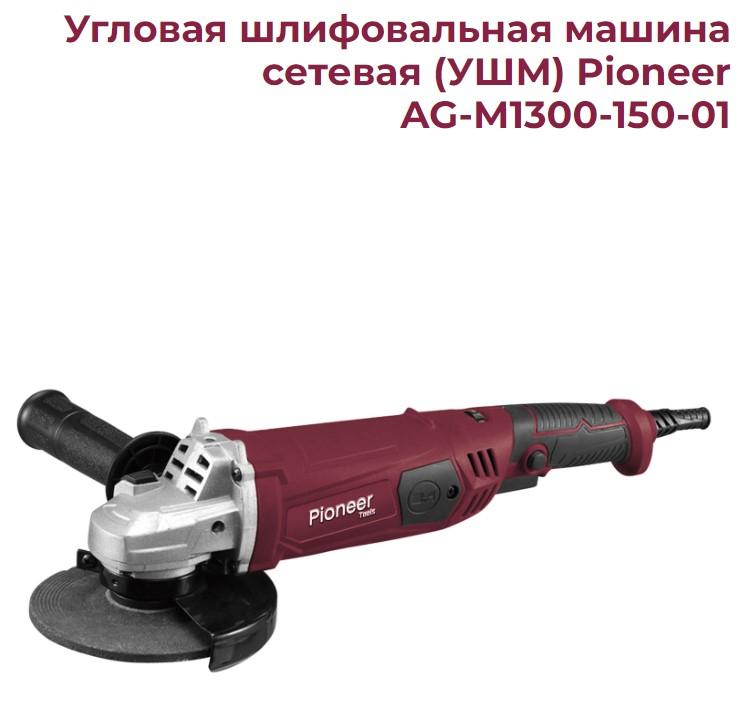 УШМ Pioneer AG-M1300-150-01, 1300 Вт, D 150 мм, 0-12000 об/мин.3 полож.рукоятки