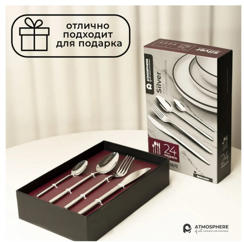 ATMOSPHERE Н-р приборов столовых Silver, 24 предмета