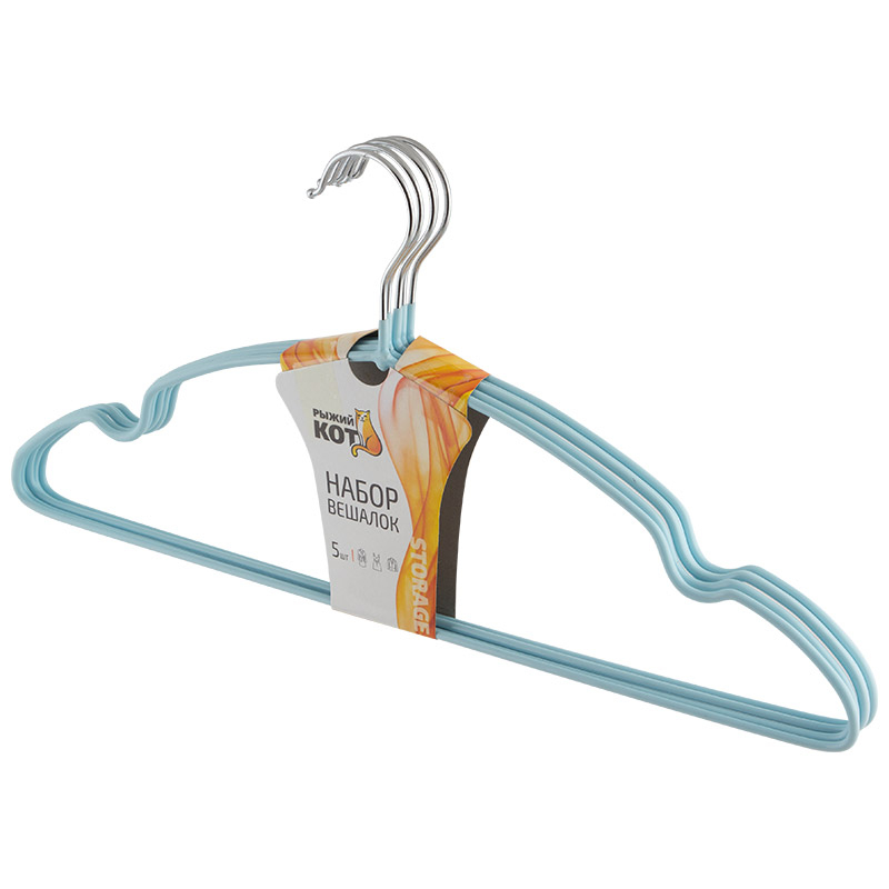 СКР Набор вешалок с ПВХ покрытием, 5 шт. цвет - бирюзовый