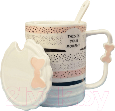 LENARDI Кружка 400мл с крышкой и ложкой в под.уп.(х36)Фарфор