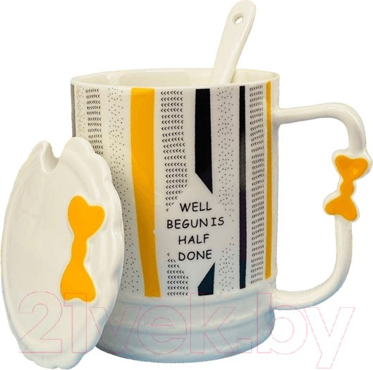 LENARDI Кружка 400мл с крышкой и ложкой в под.уп.(х36)Фарфор