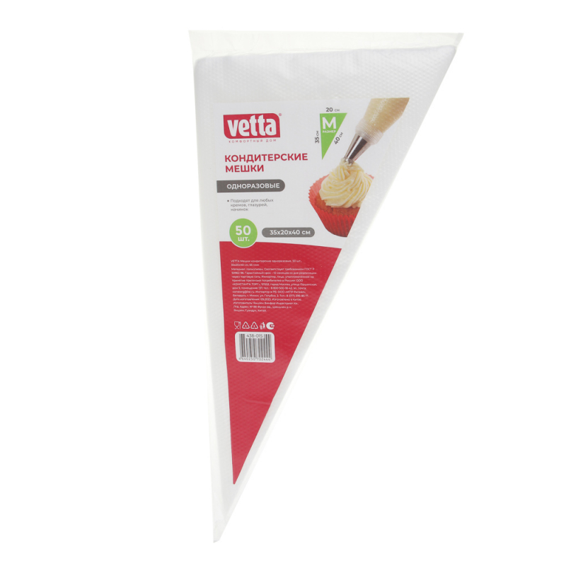 VETTA Мешки кондитерские одноразовые, 50шт, 35x20x40см, 55мкм