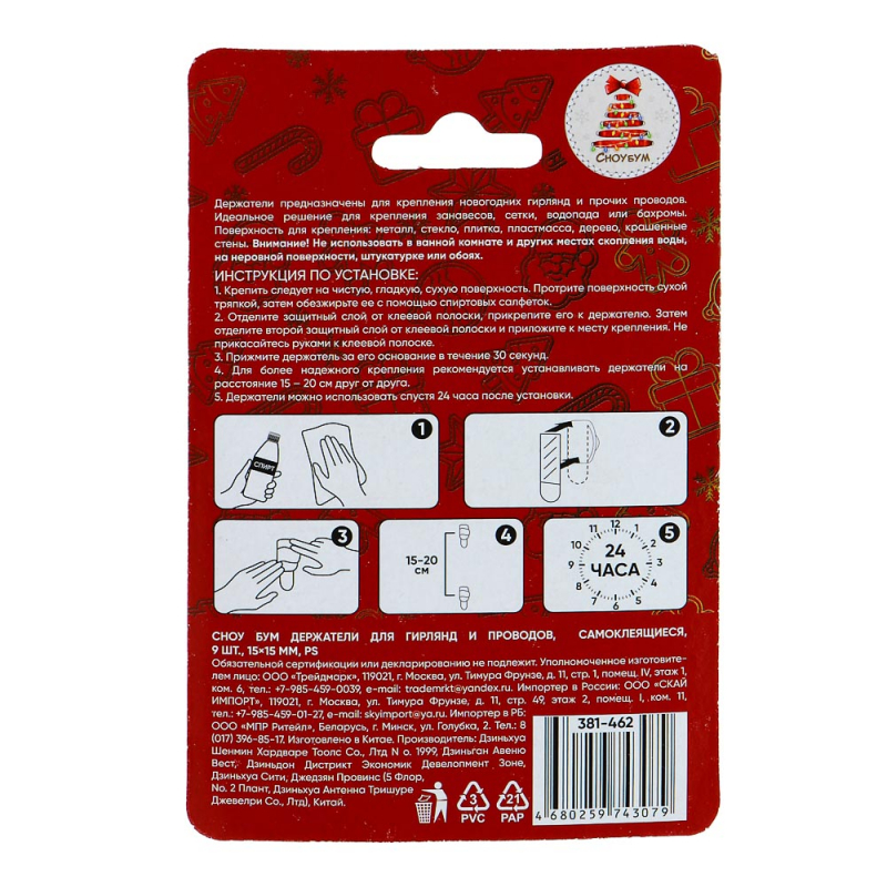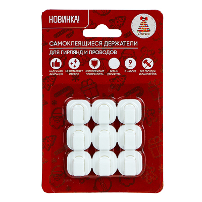VETTA СНОУ БУМ Держатели для гирлянд и проводов, самоклеящиеся, 9шт, 15х15мм, PS