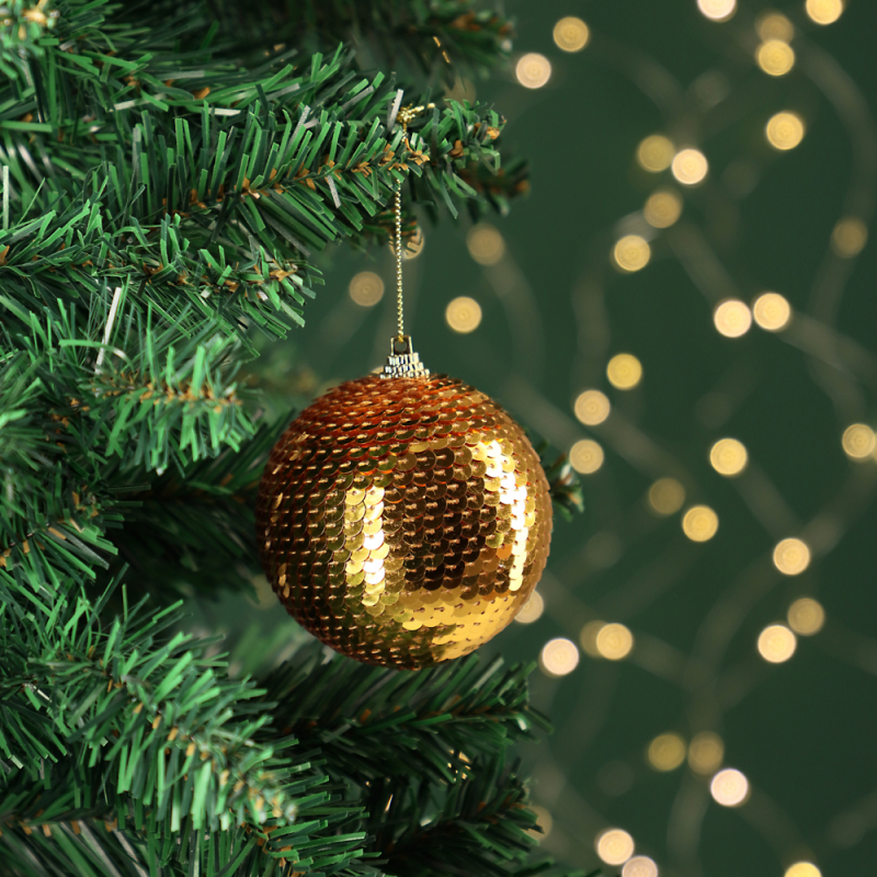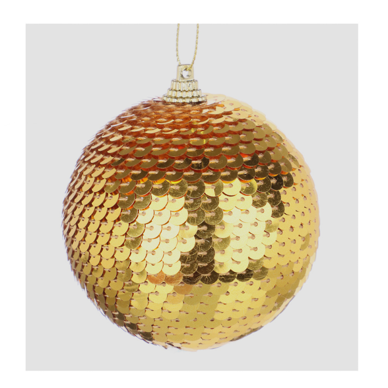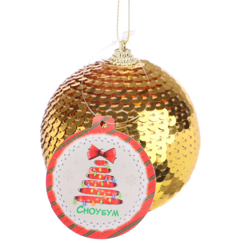 СНОУ БУМ Подвеска шар с пайетками, золотой цвет, пластик, 8см